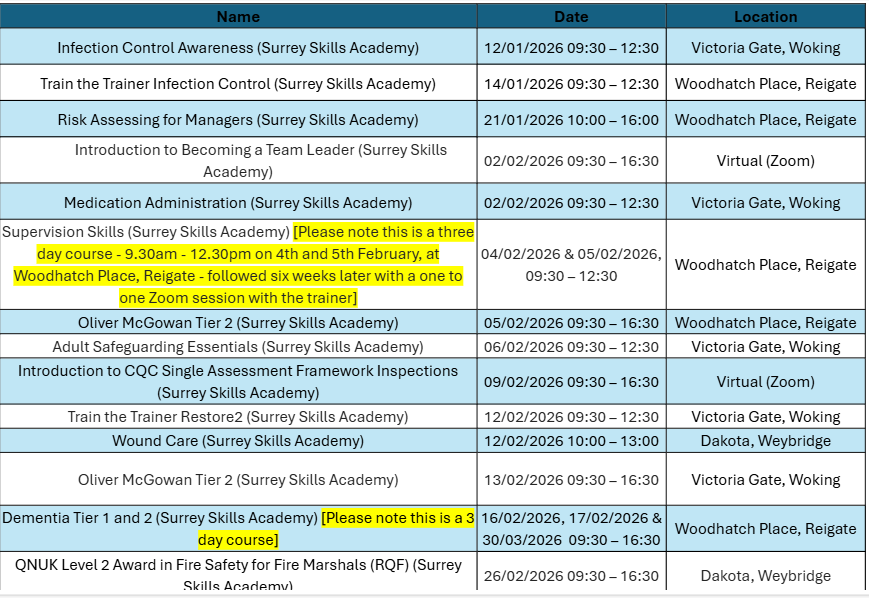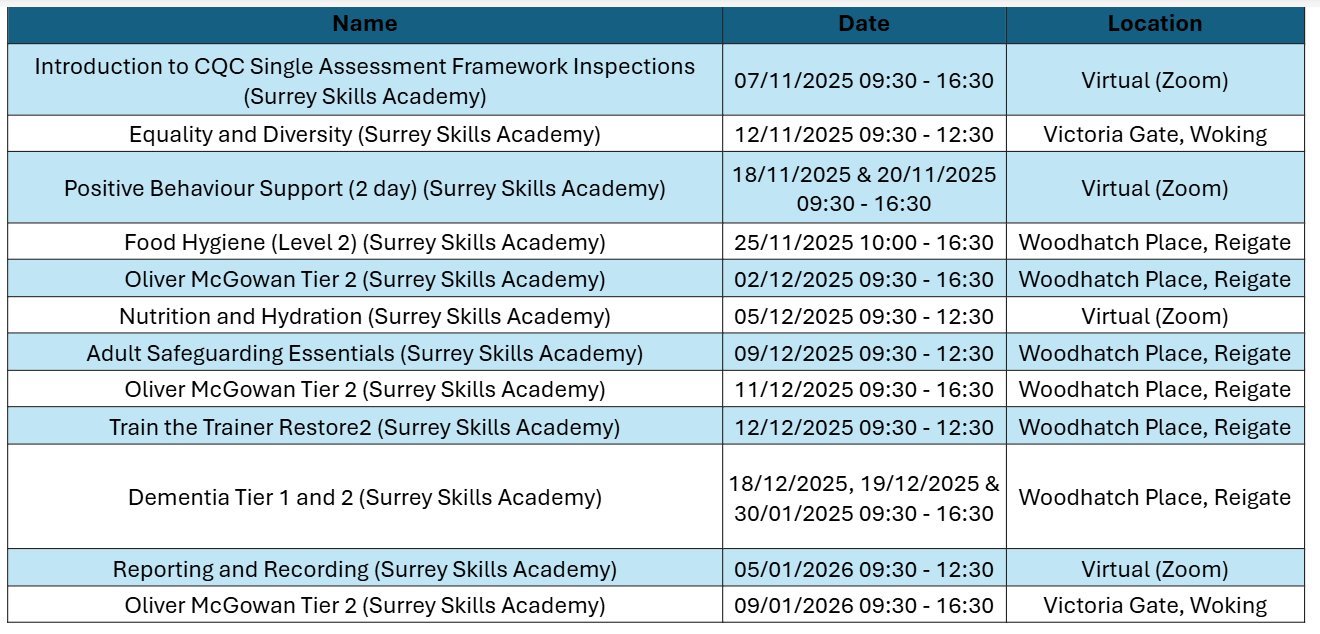 Explore accredited training, funding opportunities, and specialist programmes designed for Surrey’s adult social care providers.